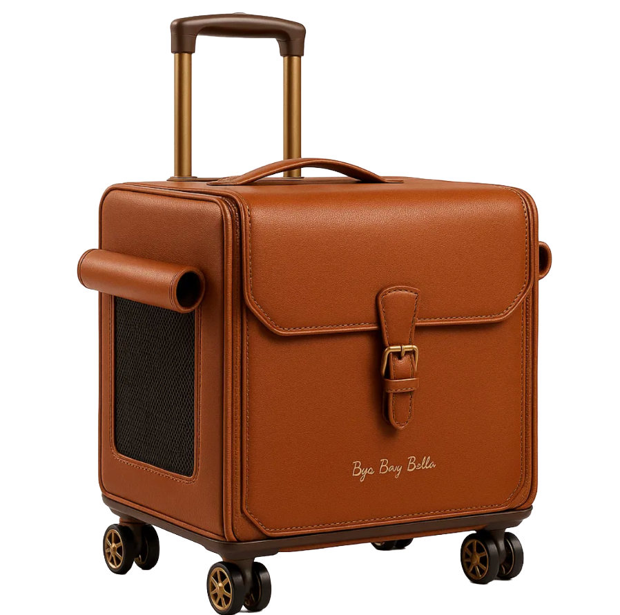 Bye Buy Bella is a luxury pet lifestyle brand redefining modern travel for stylish, on-the-go owners. Our signature rolling carrier blends elevated design with smart functionality, combining sleek structure, premium materials, and refined hardware for a polished, timeless look. We believe that traveling with your pet should be both comfortable and beautiful.